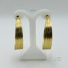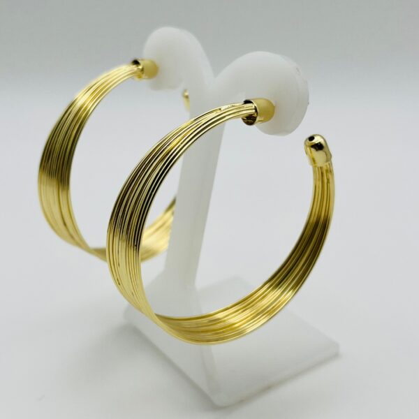 Arete dorado con diseño de mil hilos. Medidas: 5cm de largo y 1.2cm de ancho. Oro Laminado 18k.