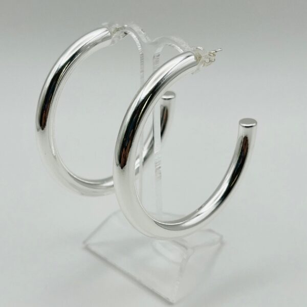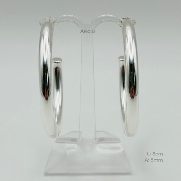 Arete rodizado tipo arracada grande con diseño grueso. Medidas: 5cm de largo y 5mm de ancho. Oro Laminado 18k.