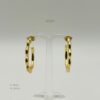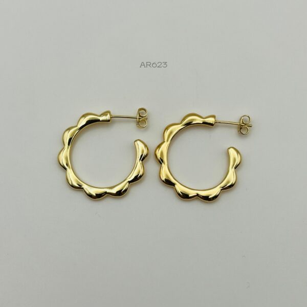 Arete dorado con diseño bordeado liso. Medidas: 3cm de largo y 2mm de ancho. Oro Laminado 18k.