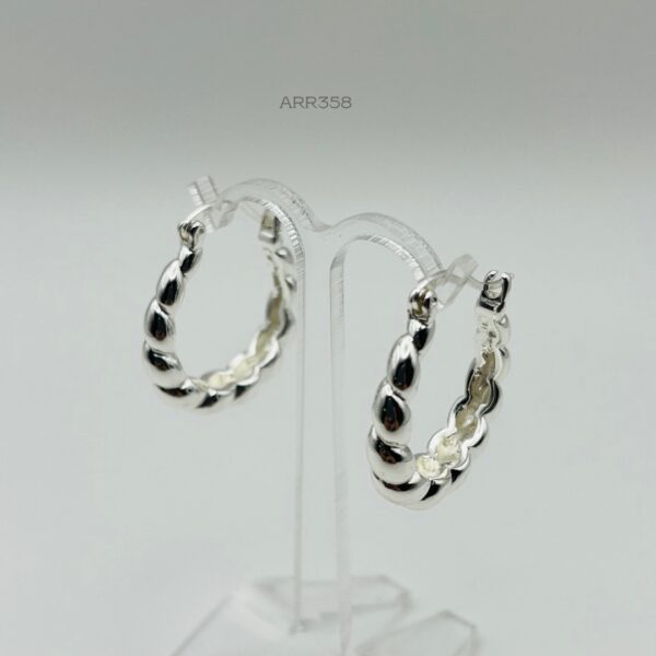 Arracada rodizada con diseño torzal. Medidas: 2.6cm de largo y 6mm de ancho. Oro laminado 18k