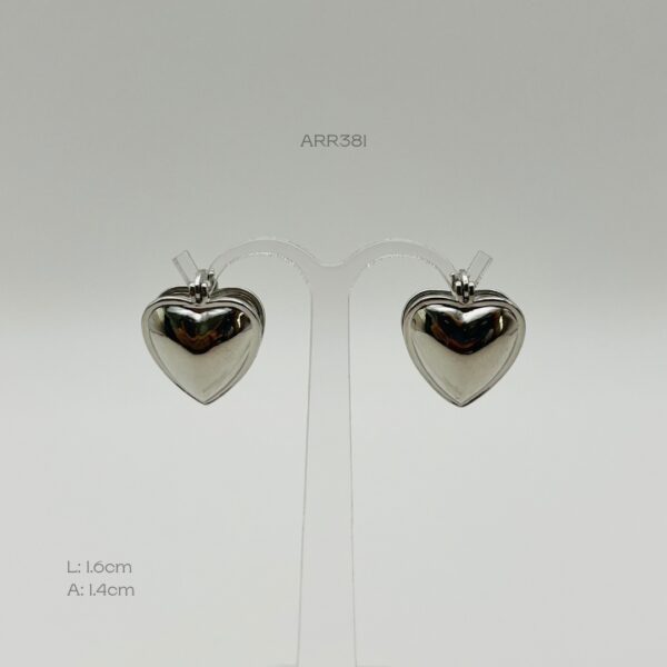 Arracada rodizada con forma de corazón con diseño liso. Medidas: 1.6cm de largo y 1.4cm de ancho. Oro laminado 18k