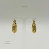 Arracada dorada con diseño de bolitas. Medidas: 2.2cm de largo y 6mm de ancho. Oro laminado 18k