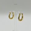 Arracada dorada con diseño bordeado simulando diseño torzal. Medidas: 2cm de largo y 5mm de ancho. Oro laminado 18k