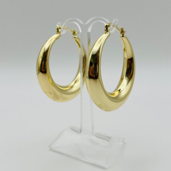 Arracada dorada gruesa con diseño liso. Medidas: 4cm de largo y 7mm de ancho. Oro laminado 18k