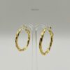 Arracada dorada con diseño torzal. Medidas: 3.3cm de largo y 2mm de ancho. Oro laminado 18k
