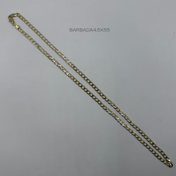 Cadena de tejido barbado clasico con medida de 4.5mm de ancho y 55cm de largo. Oro Laminado 18k.