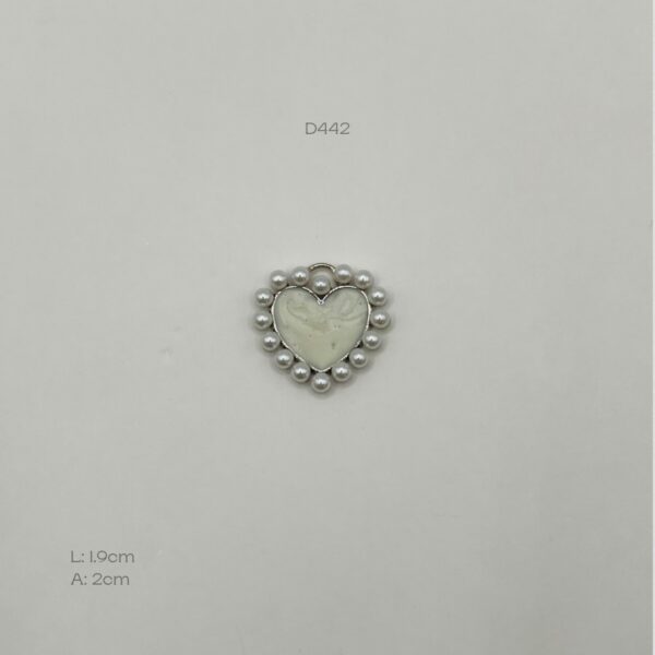 Dije dorado con diseño de corazón marmoleado con contorno de perla. Medidas: 1.9cm de largo y 2cm de ancho. Oro Laminado 18k.