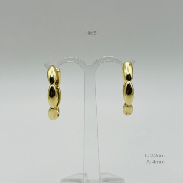 Hoops doradas con diseño seccionado liso. Medidas: 2.2cm de largo y 4mm de ancho. Oro Laminado 18k.
