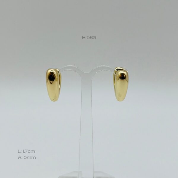 Hoops doradas con diseño grueso en forma triangular. Medidas: 1.7cm de largo y 6mm de ancho. Oro Laminado 18k.