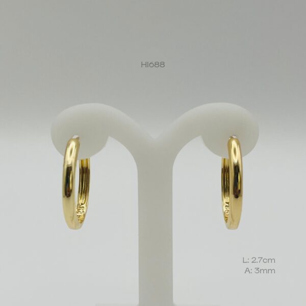Hoops doradas con diseño liso. Medidas: 2.7cm de largo y 3mm de ancho. Oro Laminado 18k.