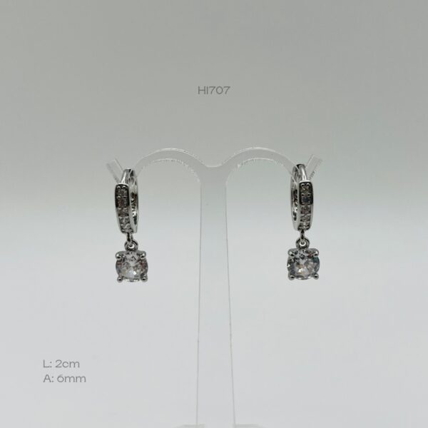 Hoops rodizadas con diseño de incrustación de zirconia mini en la parte superior con una zirconia redonda colgante. Medidas: 2cm de largo y 6mm de ancho. Oro Laminado 18k.