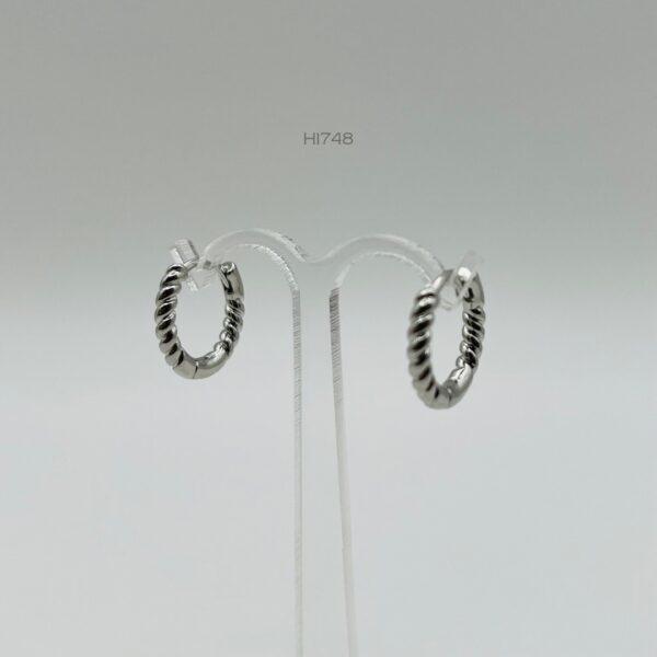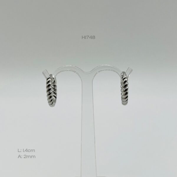 Hoops rodizadas con diseño torcido con los extremos y el centro liso. Medidas: 1.4cm de largo y 2mm de ancho. Oro Laminado 18k.