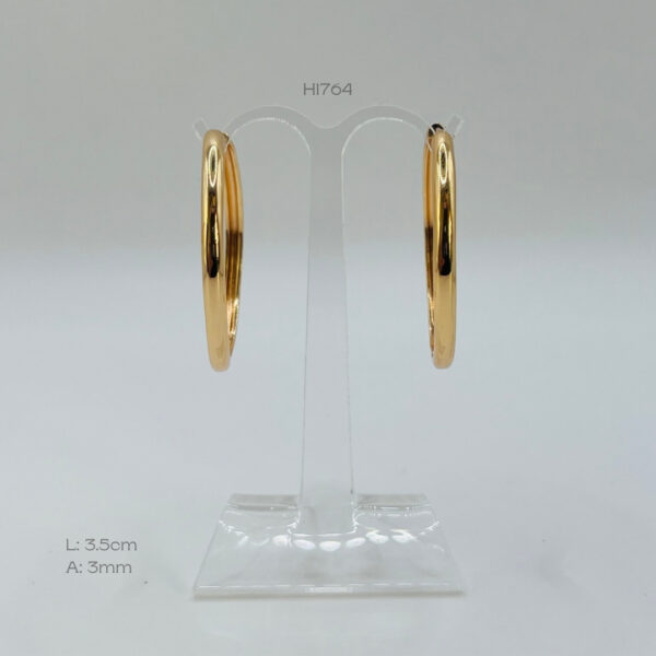Hoops champagne grandes con diseño liso. Medidas: 3.5cm de largo y 3mm de ancho. Oro Laminado 18k.