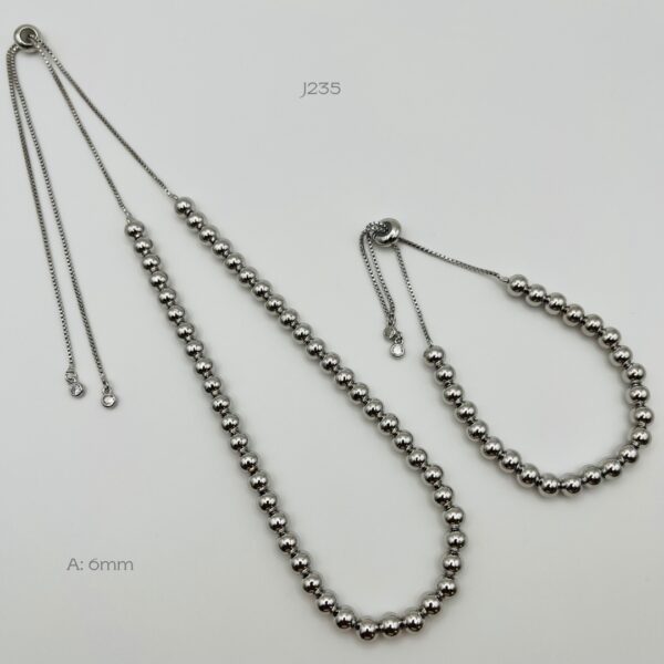 Juego de collar y pulsera ajustables rodizado, con diseño de bola lisa de 6mm. Oro laminado 18k.