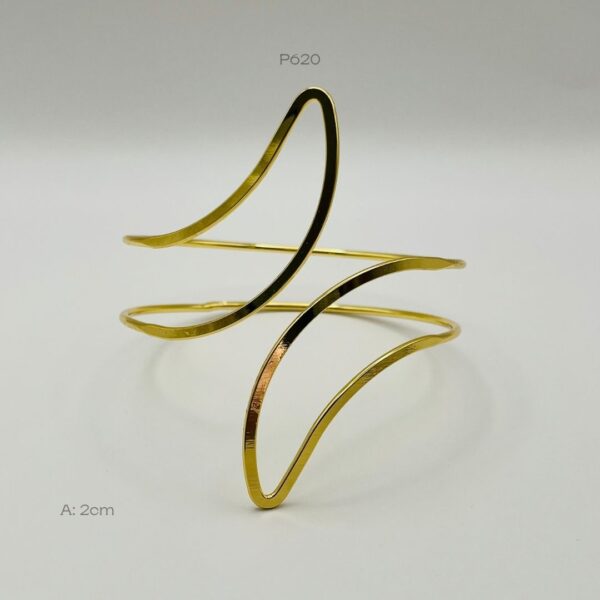 Brazalete ajustable dorado con diseño de líneas paralelas. Medidas: 2cm de ancho. Oro Laminado 18k.