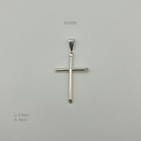 Dije de plata nacional de cruz. Medidas: 5.5cm de largo y 3cm de ancho. Peso promedio: 3gr. Plata ley .925