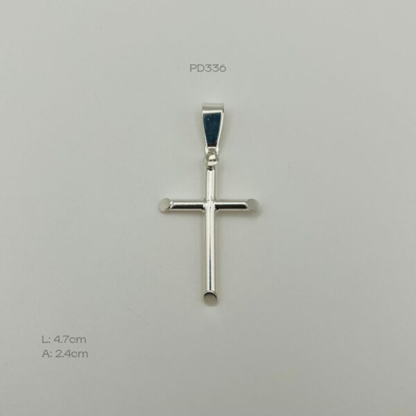 Dije de plata nacional de cruz. Medidas: 4.7cm de largo y 2.4cm de ancho. Peso promedio: 2.5gr. Plata ley .925