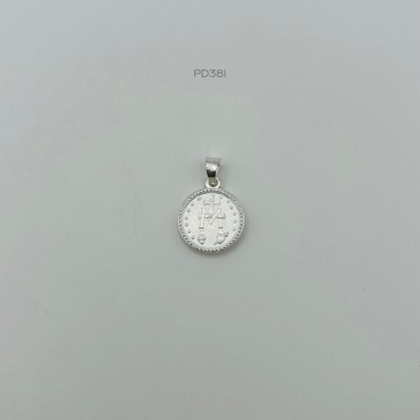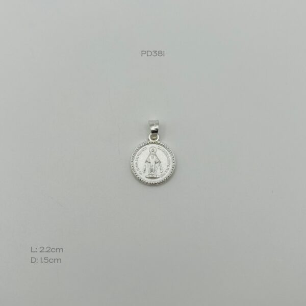 Dije plata italiana de medalla de la Virgen de Fátima. Medidas: 2.2cm de largo y 1.5cm de ancho. Peso promedio: 2.6gr. Plata ley .925