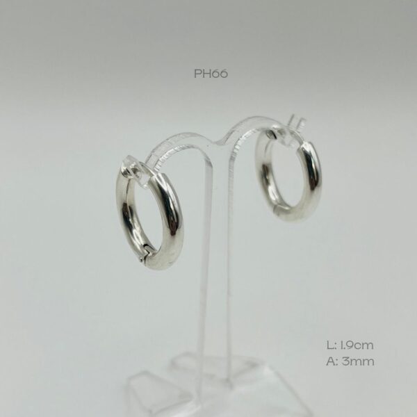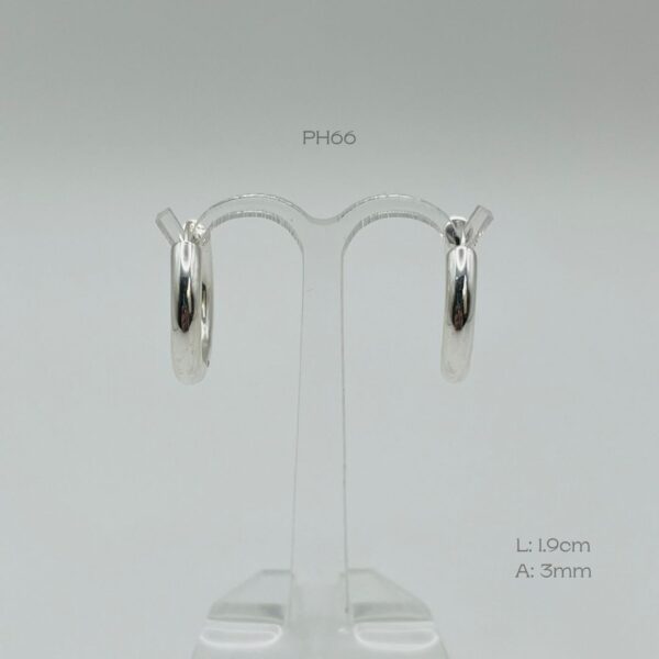 Hoops de plata italiana con diseño liso grueso. Medidas: 1.9cm de largo y 3mm de ancho. Peso promedio: 3.6gr. Plata Ley .925