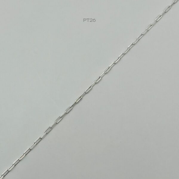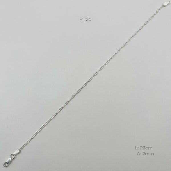 Tobillera de plata italiana con diseño de eslabones. Medidas: 23cm de largo y 2mm de ancho, peso promedio: 2.4gr. Plata ley .925