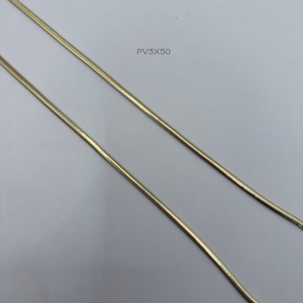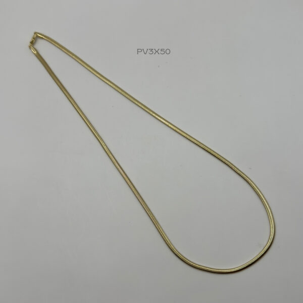 Cadena de tejido panza de vibora con medida de 3mm de ancho y 50cm de largo. Oro Laminado 18k.