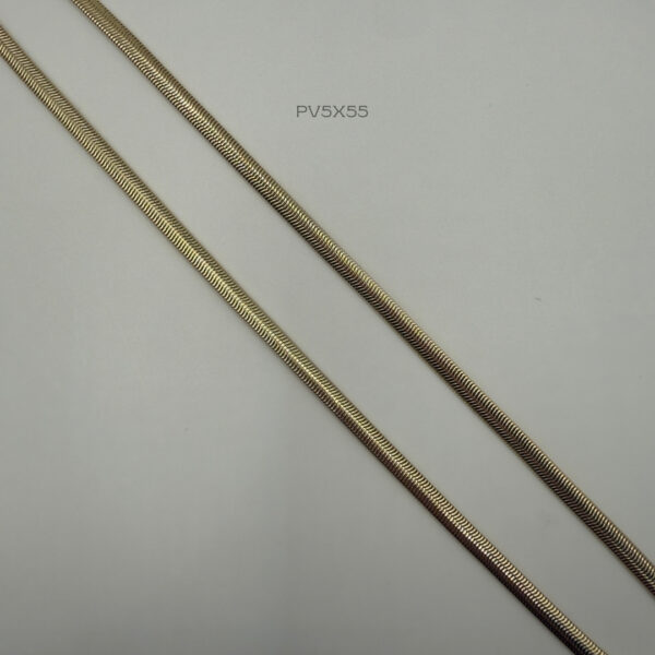 Cadena de tejido panza de vibora con medida de 5mm de ancho y 55cm de largo. Oro Laminado 18k.
