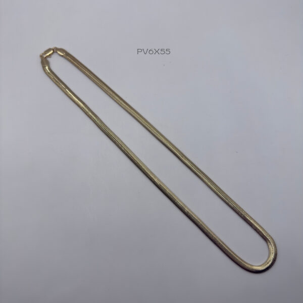 Cadena de tejido panza de vibora con medida de 6mm de ancho y 55cm de largo. Oro Laminado 18k.