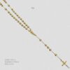 Rosario dorado de imagen de San Judas Tadeo y crucifijo. Medidas: 60cm en cuello y 12.5cm de excedente, con bola de 6mm. Oro laminado 18k.