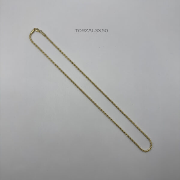 Cadena de tejido torzal clásico con medida de 3mm de ancho y 50cm de largo. Oro Laminado 18k.