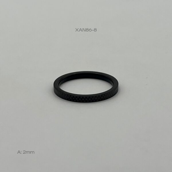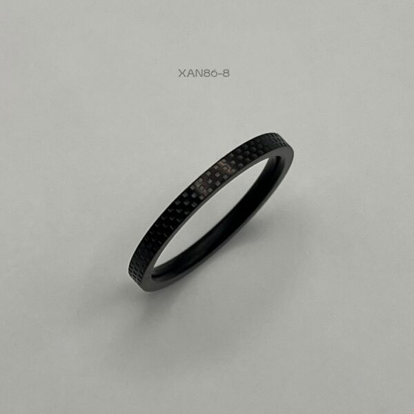 Anillo de acero inoxidable en color negro, con diseño de cuadros. Medida: 2mm de ancho, #8 Acero Inoxidable.